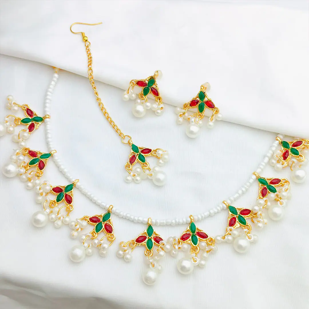 রেড–গ্রিন কুন্দন ও মুক্তা ঝুলসহ