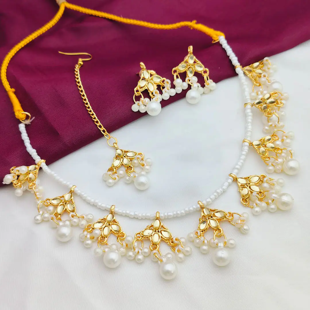 পুরো নেকলেস জুড়ে হোয়াইট কুন্দন স্টোন পাতা-আকৃতির মোটিফ